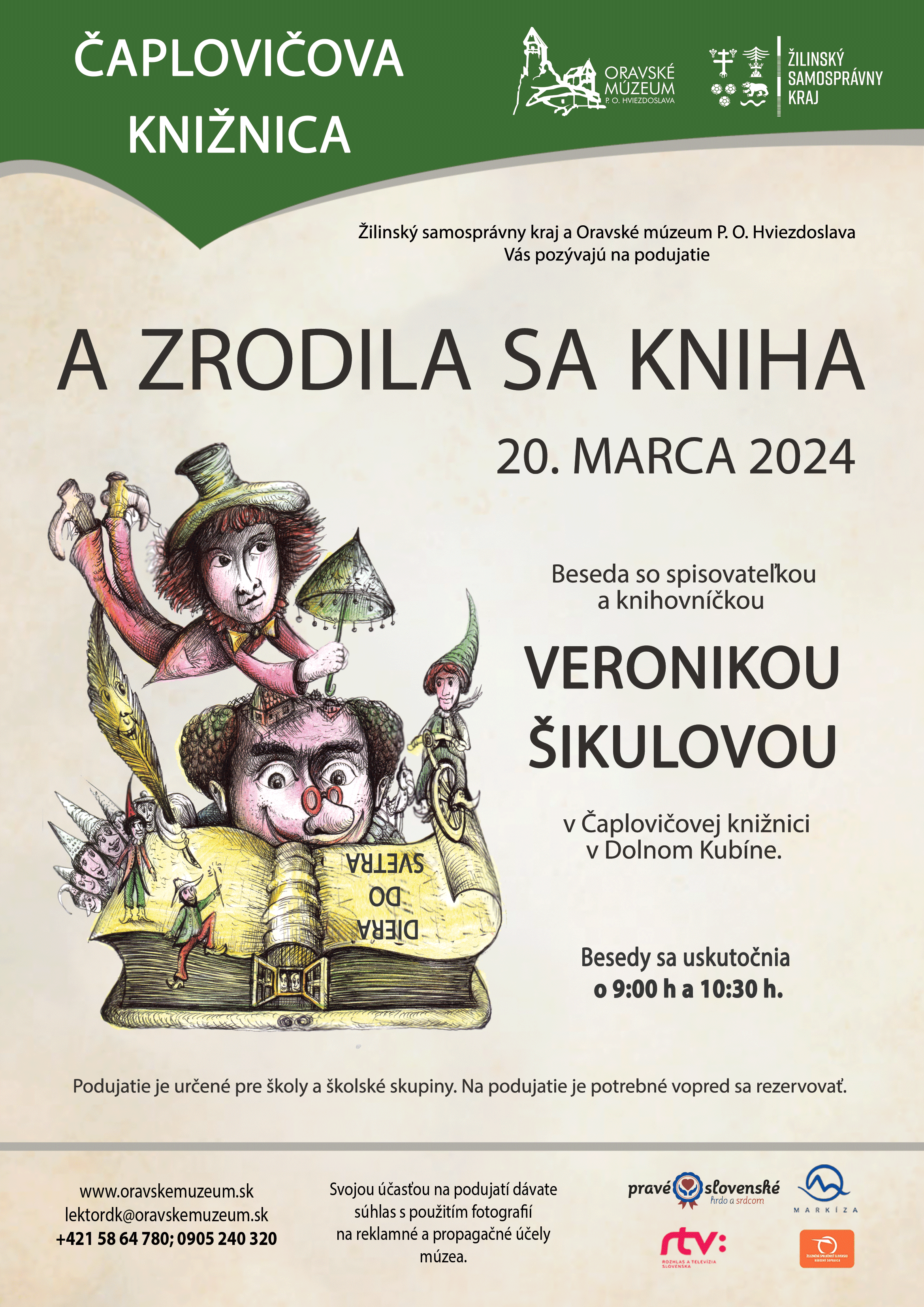 Dolný Kubín, streda, 20. marec 2024 – Oravské múzeum P. O. Hviezdoslava, ktorého zriaďovateľom je Žilinský samosprávny kraj, pripravilo v stredu 20. marca 2024 v priestoroch expozície Pavla Országha Hviezdoslava v Čaplovičovej knižnici v Dolnom Kubíne pre žiakov základných a stredných škôl podujatie s názvom „A zrodila sa kniha“. Naše pozvanie tento rok prijala známa a obľúbená slovenská spisovateľka a knihovníčka Veronika Šikulová, ktorá je držiteľkou viacerých prestížnych ocenení.