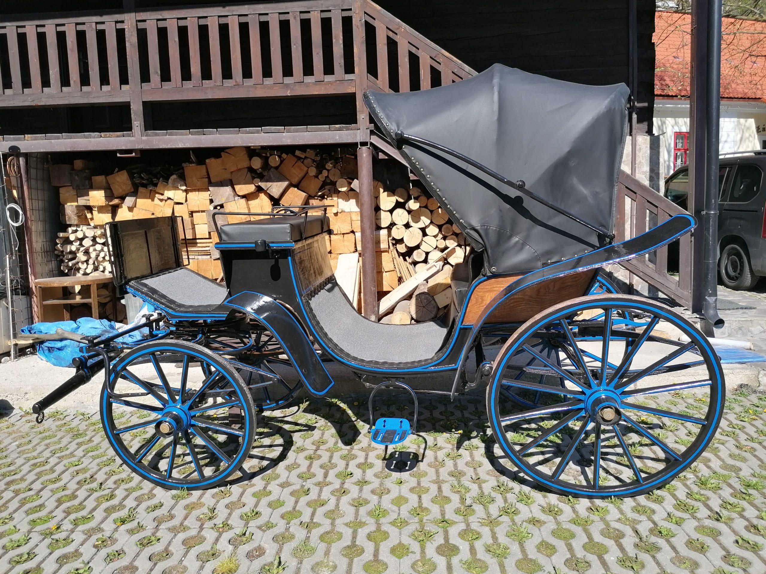 Koč pozostáva z dvoch náprav, ktoré tvoria jeho kostru. Predná otočná a zadná, ktoré sú nosné a pripojené na drevenú časť koča. V prednej časti sa nachádza sedadlo pre kočiša a v zadnej je sedenie s možnosťou zakrytia koženou skladacou strechou. Vnútorná časť je čalúnená a vystupuje sa do nej pomocou kovových stupňovitých nášľapov. Nad prednou časťou je nad otočným kĺbom prednej nápravy umiestnený kozlík pre kočiša a po stranách kočiara sú vsadené lucerny. Na koči je čierna farebná úprava. Celková váha je cca 200 – 250kg, jeho dĺžka je 320cm,výška 200cm a šírka 170cm.