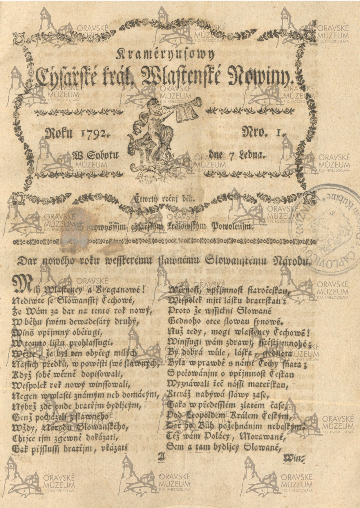 Kraméryusowy Cýsařské král. Wlastenské Nowiny. [Praha: V. M. Kramerius], 1792, č. 1-33; č. 36-43; č.45; č. 48-52.