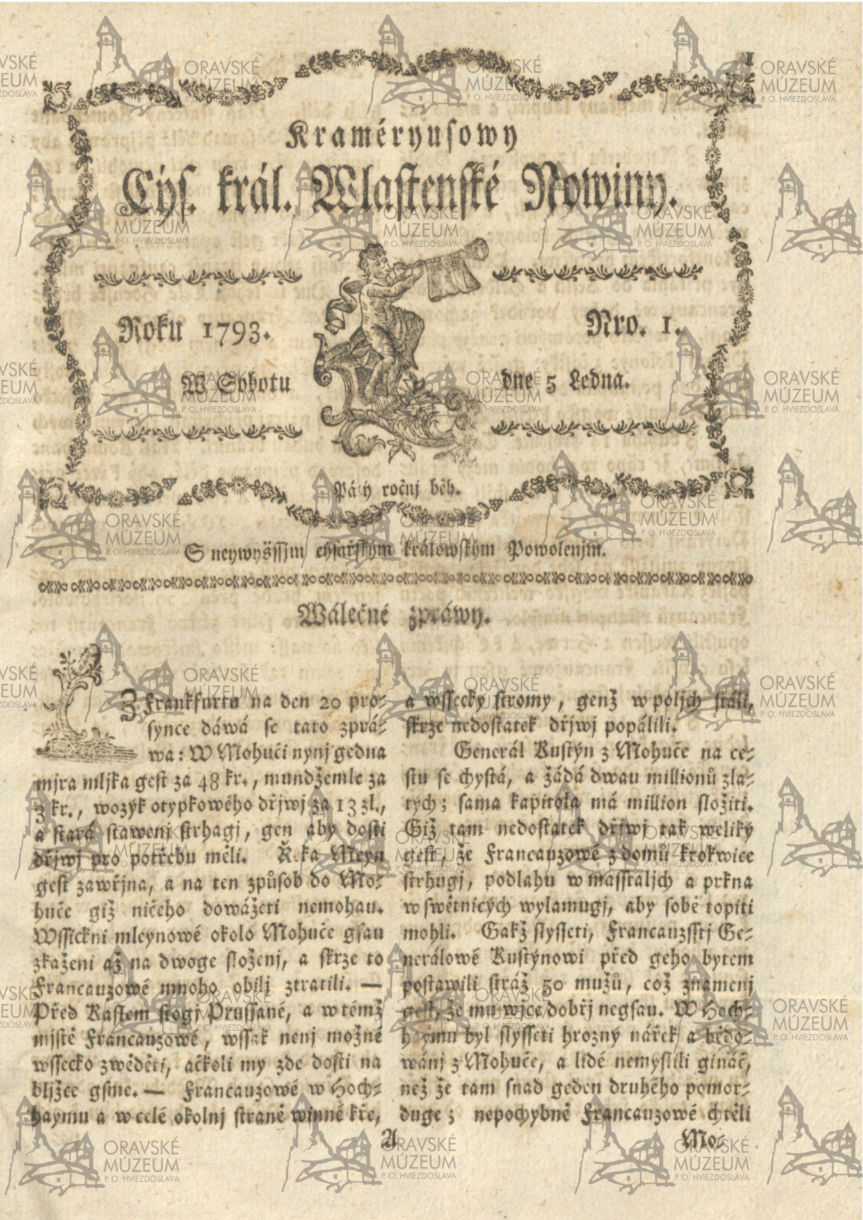 Kraméryusowy Cýsařské král. Wlastenské Nowiny. [Praha: V. M. Kramerius], 1793, č.1-23; č.25-52