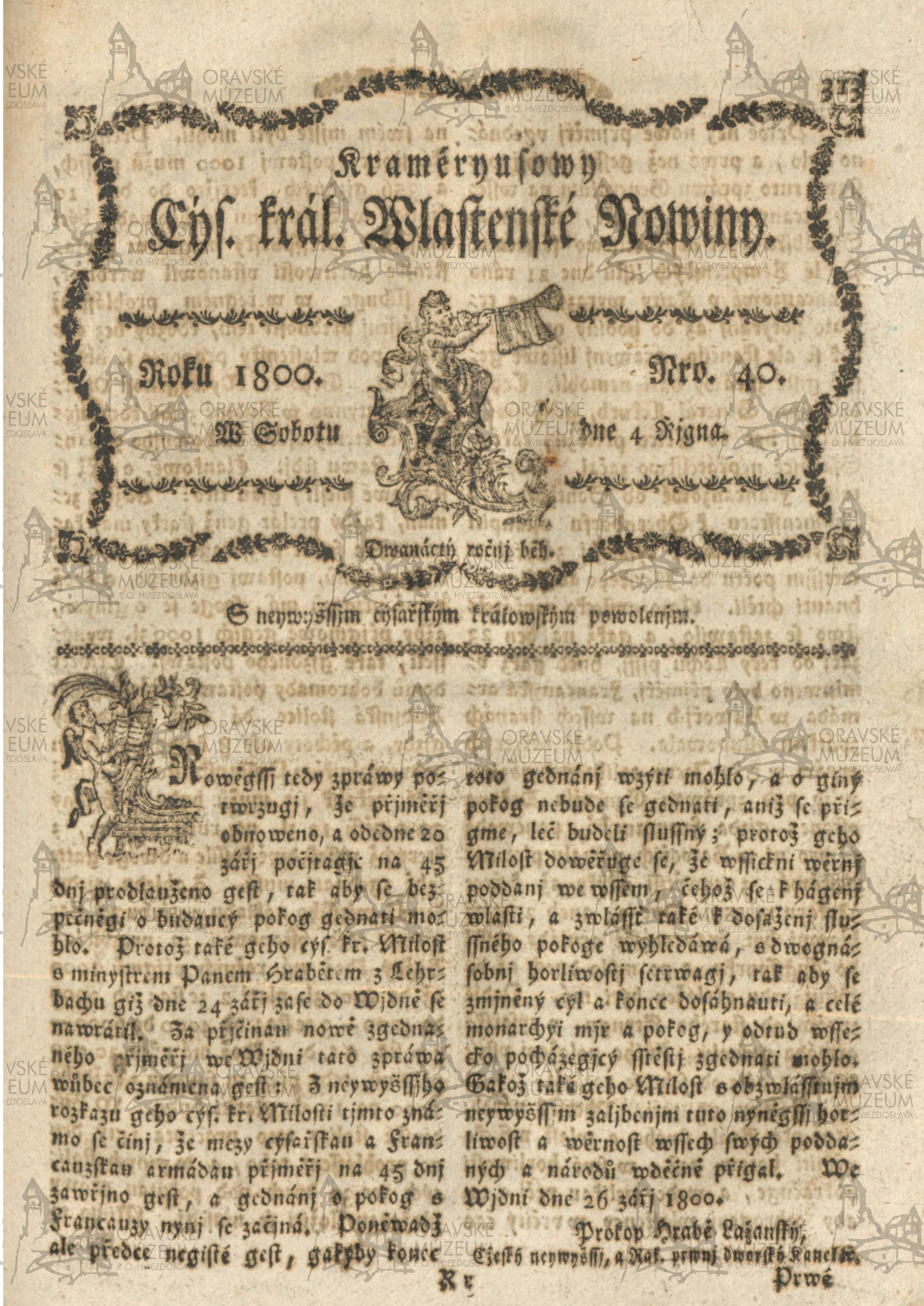 Kraméryusowy Cýsařské král. Wlastenské Nowiny. [Praha: V. M. Kramerius], 1800, č.1-13; č.16-43; č. 46-52