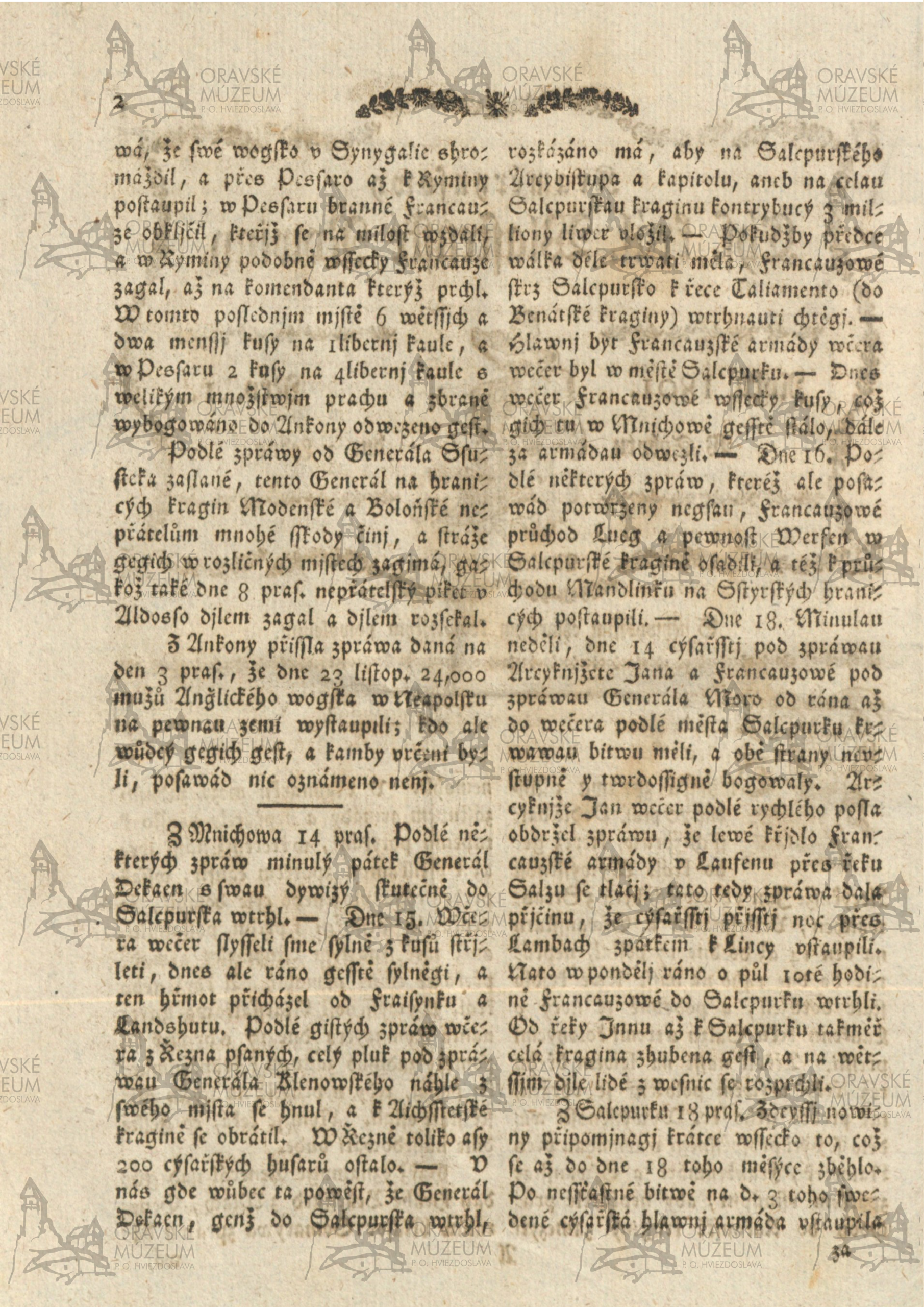 Schoenfeldské Cýs. Král. Pražské Nowiny. [Praha: J. F. zo Schönfeldu], 1789, č. 1 - 20; č. 22-26