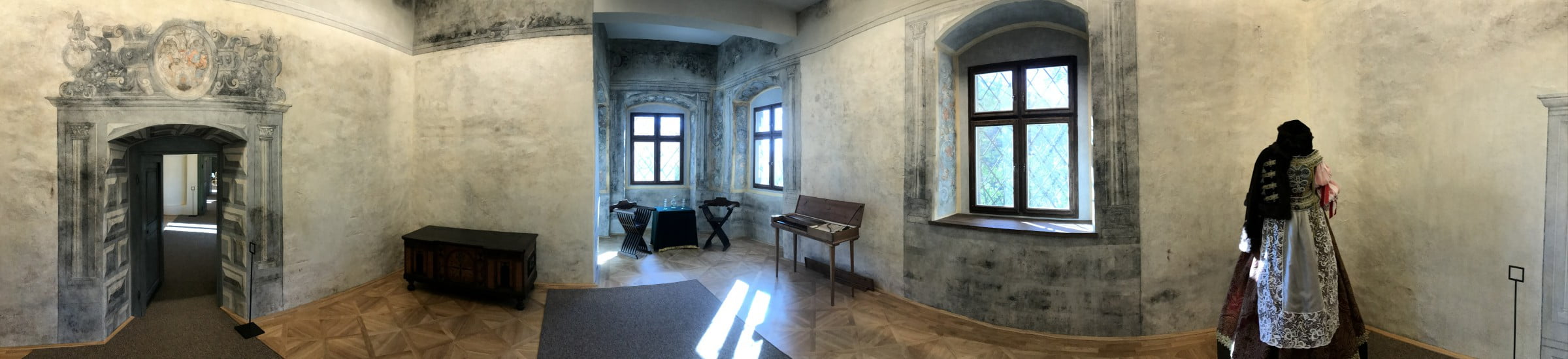 Súčasťou tejto miestnosti sú fragmenty vzácnych renesančných nástenných malieb, datovaných do obdobia  Juraja Thurzu (16.-17. storočie), ktorý ukončil výstavbu paláca. V medailónoch sa nachádzajú portréty Alžbety Czoborovej – Thurzovej a Juraja Thurza.