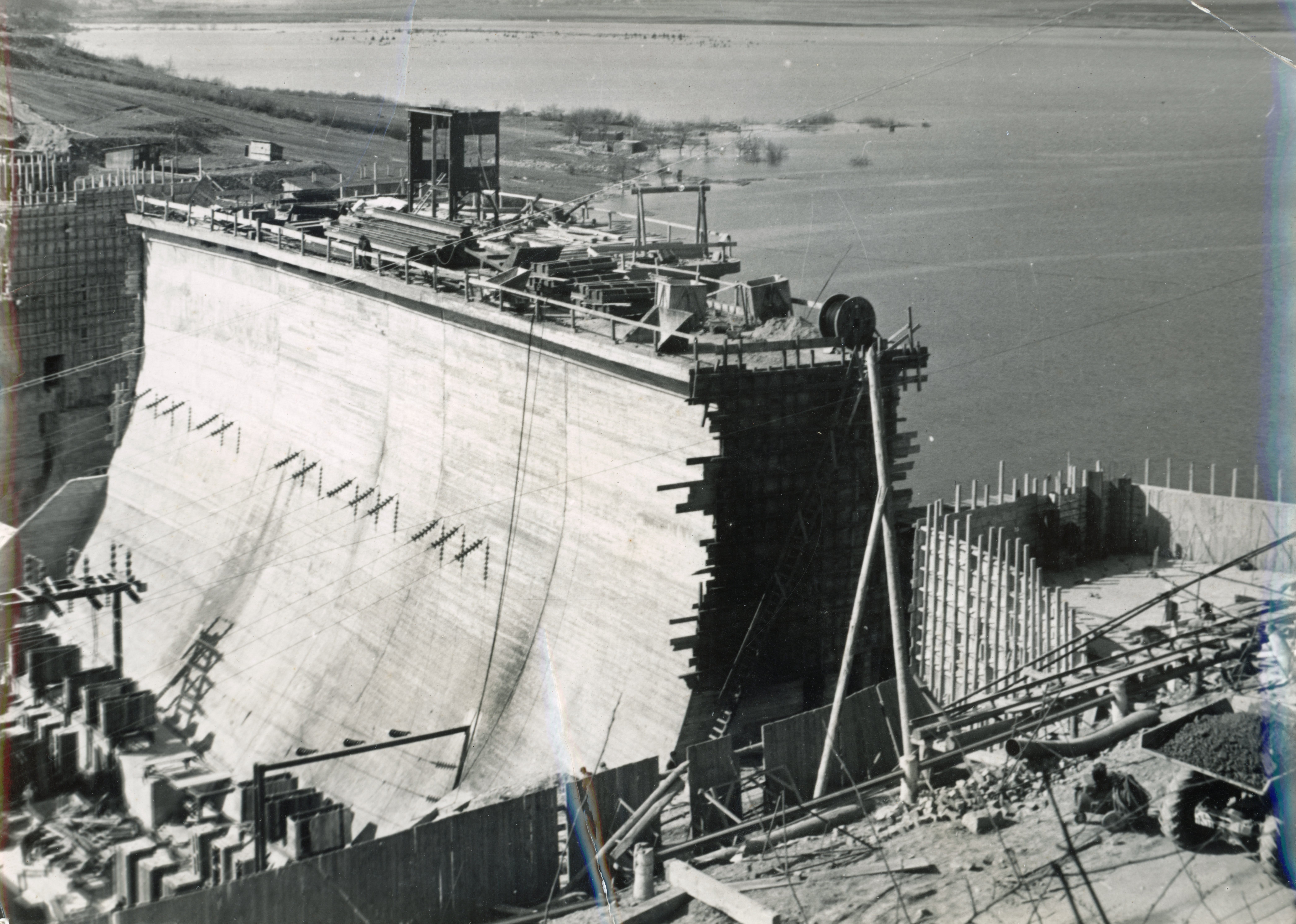 Obr. č. 8: Práce na stavbe priehradného múru Oravskej priehrady. Zdroj: Zbierkový fond OM, H-9744-24