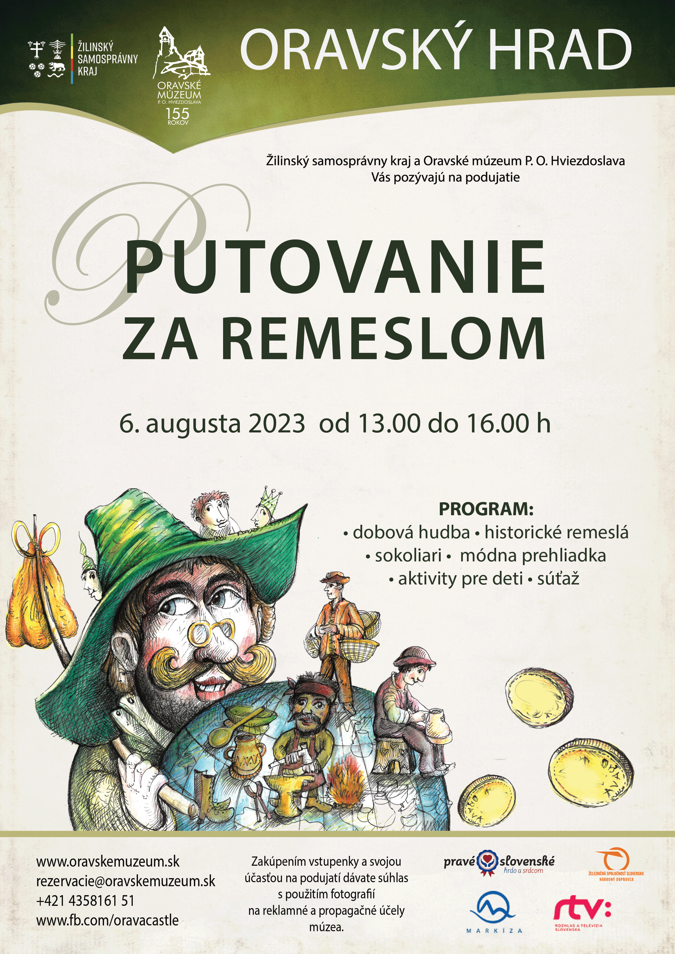 Oravské múzeum P. O. Hviezdoslava pripravilo 6. 8. 2023 pre návštevníkov Oravského hradu podujatie s názvom „Putovanie za remeslom“. Počas nedeľného popoludnia od 13.00 do 16.00 hod. sa na nádvorí Oravského hradu odprezentujú zruční remeselníci, ktorí priblížia minulosť i súčasnosť remeselných činností a ich  zachovávanie v súčasnosti. Pripravený je aj bohatý sprievodný program v podobe sokoliarskych vystúpení, ľudovej hudby či módnej prehliadky. Najmenší návštevníci budú mať možnosť zapojiť sa do súťaže „Remeslo má zlaté dno“, plnej zábavných úloh a aktivít. Celý deň bude prebiehať tradičný remeselný jarmok. Podujatie je súčasťou každého okruhu prehliadky Oravského hradu.
