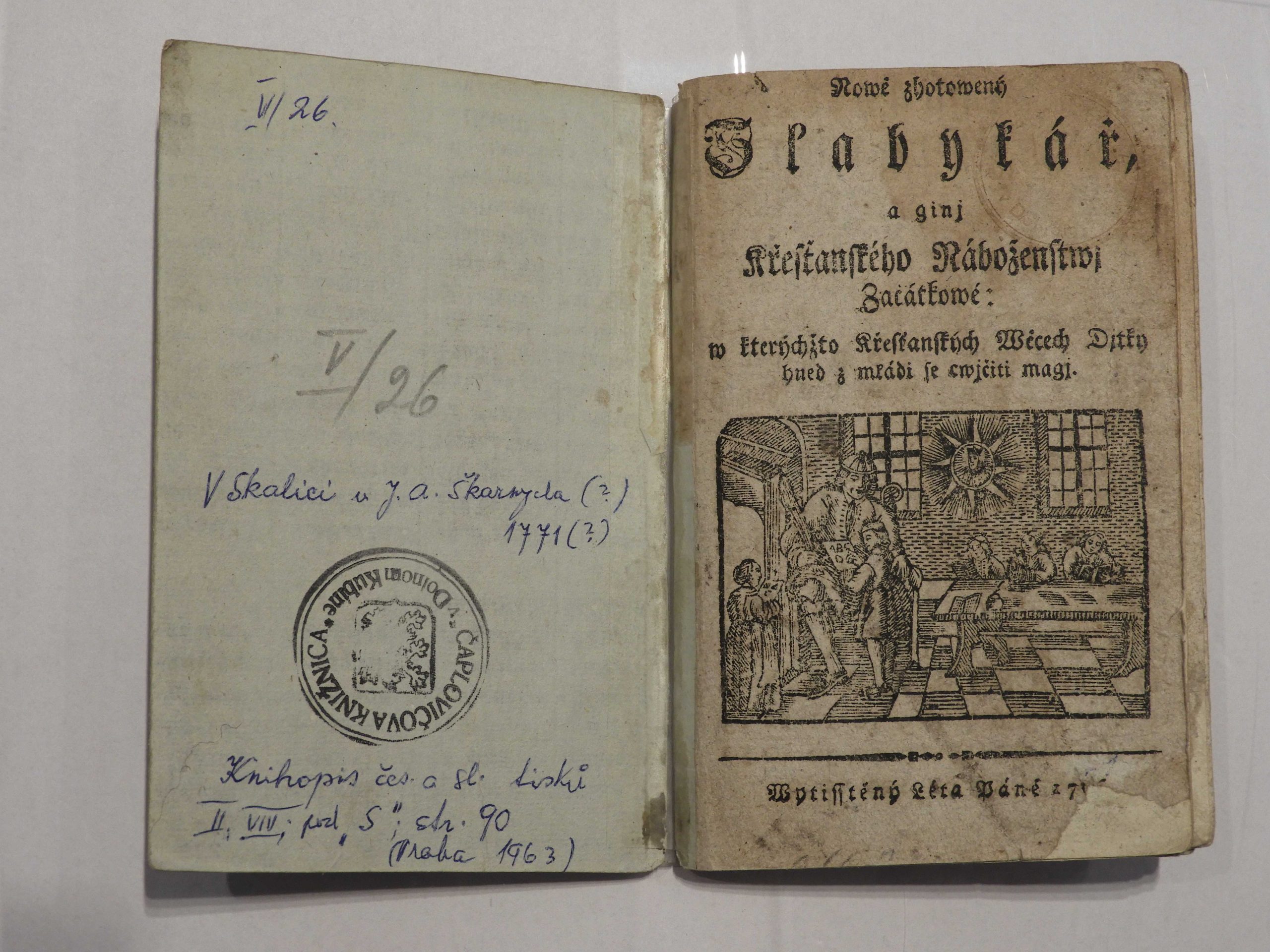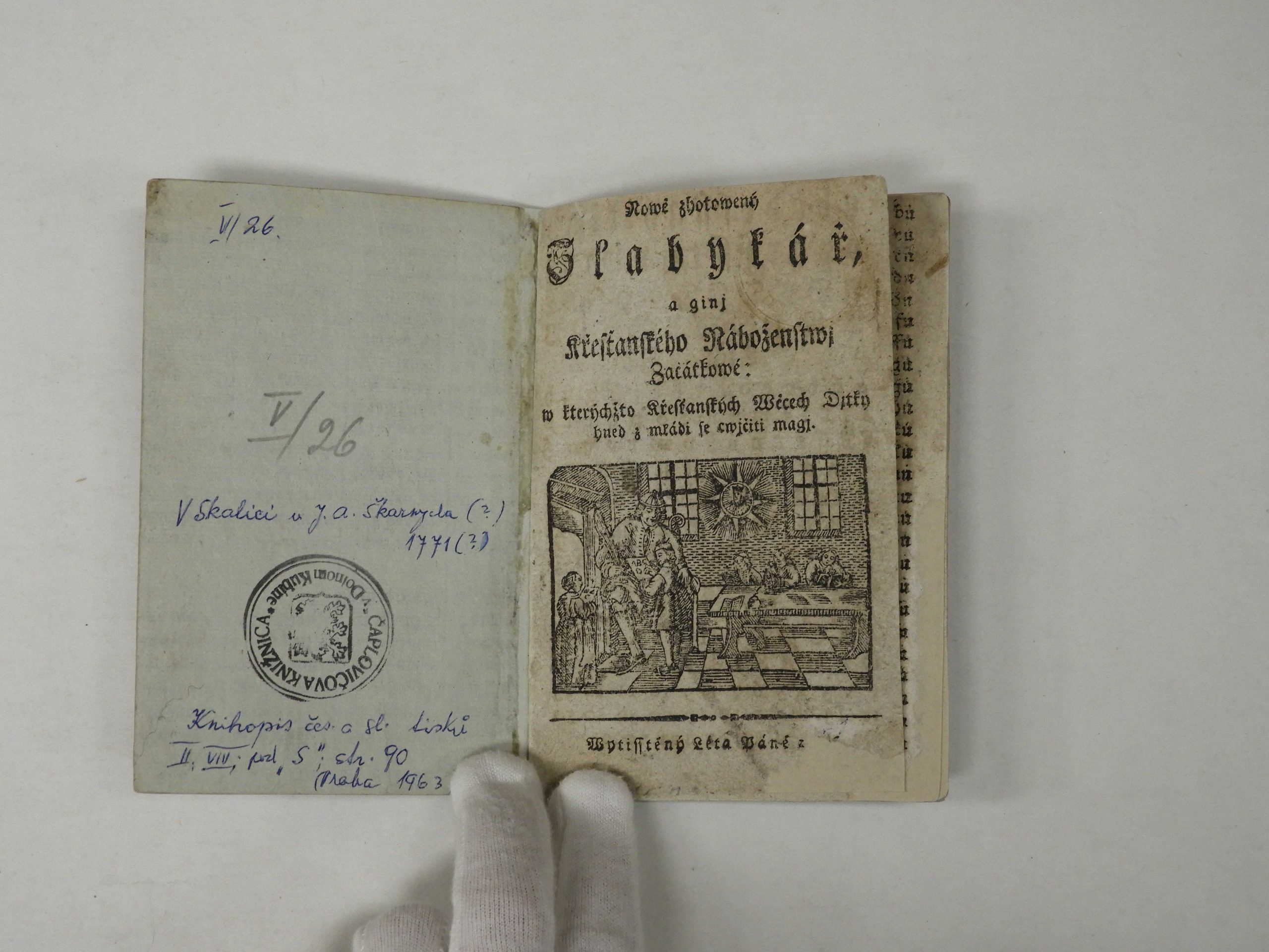 Druhé útle dielko neznámeho autora Nowě zhotowený Slabykář je náboženským šlabikárom pre deti a bol vydaný v Skalici v roku 1771. Na titulnej strane je čiernobiely drevorez zobrazujúci školskú sieň s dvoma oknami a svätojánskou hviezdou medzi nimi, naľavo sedí učiteľ a vyučuje deti. V texte knihy sa nachádza niekoľko figurálnych drevorezov. Tento náboženský (katolícky) šlabikár pre deti obsahuje abecedu, čísla, rozličné modlitby (ranná, večerná, pred jedlom, Otčenáš, Anjelské pozdravenie) a rôzne ďalšie (napr. k sv. Jánovi Nepomuckému), ďalej vyznanie viery (Krédo), Desatoro, ďalšie prikázania, sviatosti, čnosti a blahoslavenstvá. Spomenuté časti sú dobovým katechizmom pre deti.