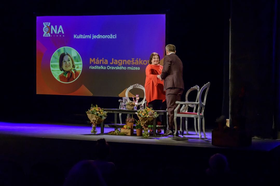 Oravský Podzámok, 31.10.2023 – Oravské múzeum P.O.Hviezdoslava, ktorého zriaďovateľom je Žilinský samosprávny kraj, reprezentovala riaditeľka Oravského múzea PaedDr. Mária Jagnešáková na prestížnom podujatí DNA LÍDRA 2023, ktoré každý rok organizuje spoločnosť Poradca podnikateľa. Celodenné podujatie sa konalo v Mestskom divadle v Žiline 23.októbra 2023. Na 5. ročníku podujatia organizátori nevšedným spôsobom spojili oblasť biznisu a kultúry formou talkshow, ktorú viedol moderátor Slávo Jurko.