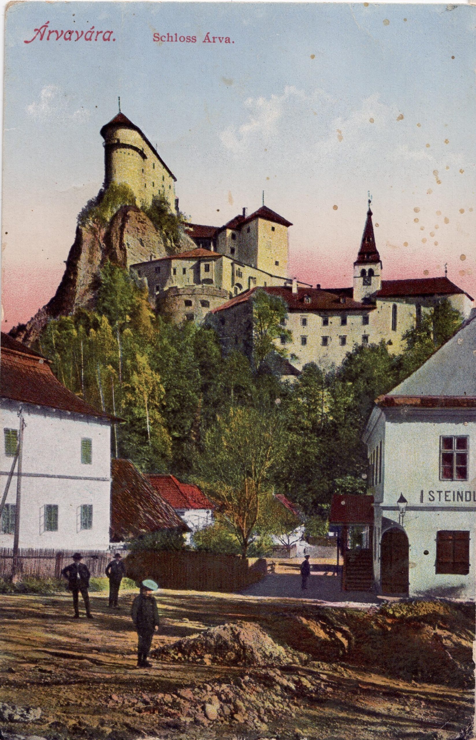 Dvermi protejšími vykročíme opäť pod holé nebo, na samý kraj skaly, ktorá je ohradená železným zábradlím nad zejúcou hĺbkou. Krásny výhľad na kraje oravské odplatí vďačnému turistovi námahu, s ktorou sa dostal do týchto výšin. Pod ním belejúca sa cesta a rieka, jako stuhy vinú sa od dediny k dedine, uprostred vzdelávaných rolí, alebo zalesnených vrchov, úzadie ktorých tvoria ďaleké šedé bašty Vysokých Tatier.