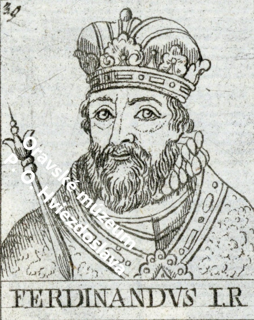 Podobizeň kráľa Ferdinanda I. Habsburského z diela Beschreibung der koenigl. hungarischen Kroenung … (Viedeň, 1790); (ČK DK IV/4722). Foto: z fondu Čaplovičovej knižnice OM.