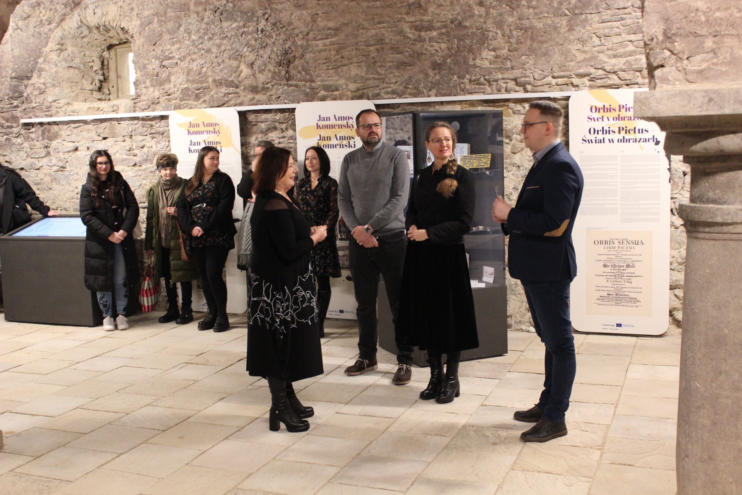 Oravský Podzámok, 23.01.2025 – Oravské múzeum P. O. Hviezdoslava, ktorého zriaďovateľom je Žilinský samosprávny kraj, dňa 23. januára 2025 otvorilo v priestoroch Stĺpovej sály Renesančnej budovy v Oravskom Podzámku novú výstavu, ktorá nesie názov „Svet v obrazoch J. A. Komenského“. Výstava je realizovaná v rámci malého projektu „Digitalizácia historického dedičstva Oravy“ v rámci programu cezhraničnej spolupráce INTERREG Slovenská republika-Poľská republika 2021-2027, ktorý je spolufinancovaný Európskou úniou z Európskeho fondu regionálneho rozvoja. Riaditeľka Oravského múzea PaedDr. Mária Jagnešáková srdečne privítala všetkých prítomných hosti a výstavu otvoril Mgr. Lukáš Tkáč, PhD.