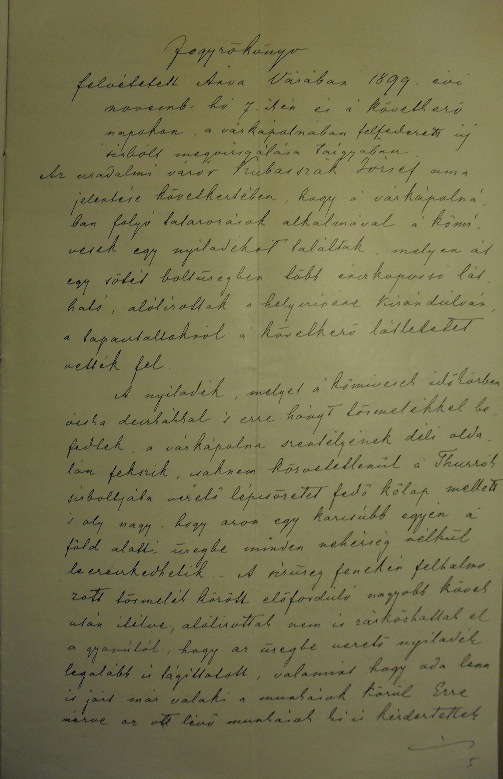 Zápisnica napísaná na Oravskom zámku dňa 7. novembra 1899 a v nasledujúce dni pri príležitosti preskúmania novej hrobky objavenej v hradnej kaplnke